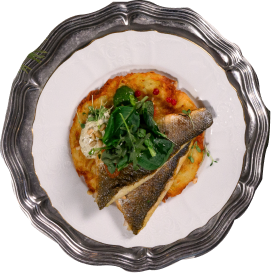 радужную форель, выведенную у истоков реки ангары, запеченную на кедровой доске в горчично-медовом соусе
