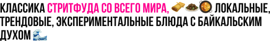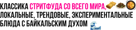 Это место кулинарного путешествия, где за 2 дня можно попробовать всё, что воплащает многонациональный дух и вкус Иркутсткой области. Здесь собрано все лучшее, что создают местные мастера гастрономии. И всё это под открытым небом